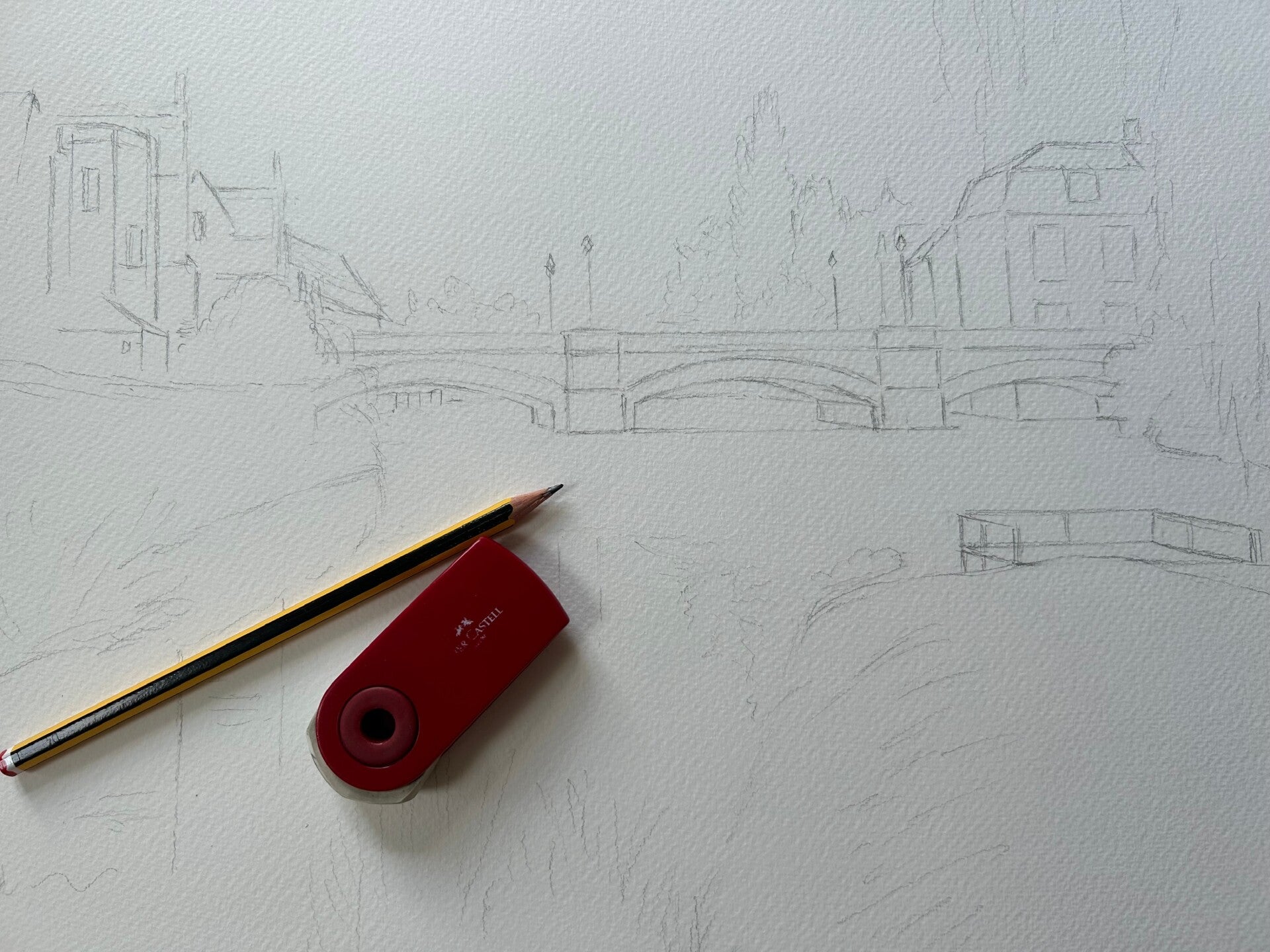 Michelle likes to visit the location or building to be painted, taking photos and making initial sketches. She is happy to incorporate any personal details or use photos of features that may not be present at the time of commissioning.